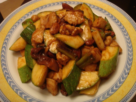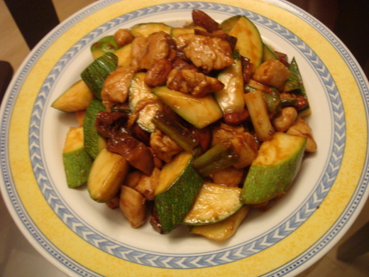 3> 同一個鍋不用洗, 再放一點油, 把翠玉瓜, 香菇放入, 約半熟的時候倒入炒熟的雞胸肉, 放一點點香菇水, 倒入已調好的醬料, 大火拌勻, 炒至收汁即可上桌.