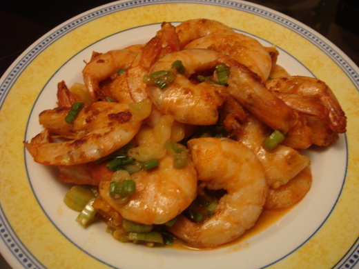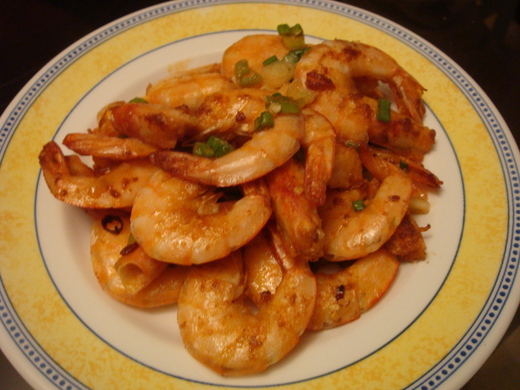 材料: 蝦子, 蔥花, 辣椒.