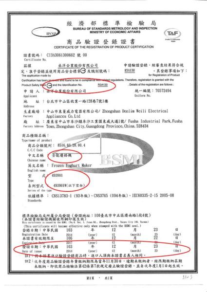丞洋企業股份有限公司代理品牌PRINCESS荷蘭公主全能優格機(型號:493901/493901W),皆於民國103年12月23日取得經濟部標準檢驗局BSMI的商品驗證登錄書,識別號碼為R3A130。 因此購買PRINCESS荷蘭公主全能優格機的您是無需擔心商品問題。