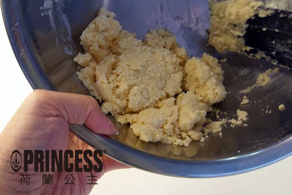 篩入粉類後,切、拌、壓的方式到無粉粒的狀態,