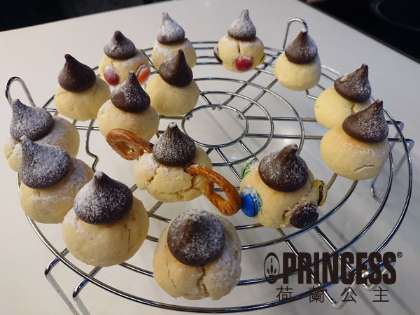 灑好糖粉後,放著讓餅乾變涼小編用的巧克力帽實在很甜哈哈,單純只是為了氣氛而放;