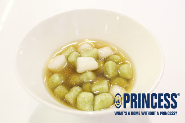 綠色的米湯圓是額外把一半的米糰拌入綠茶粉製成,白白綠綠實在可愛,但最重要的味道呢?我覺得口感的確不似麻薯,倒比較像是涵蓋一點點Q彈卻又兼具紮實的滋味;米湯圓本身沒有味道,需要靠額外的調味賦予它生命,不過若問我適不適合做成冰品,我覺得口感會變硬,反而會不好吃喔!