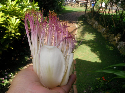 真幸福, 早上聽打掃大姐(當地人)說, 活到當阿嬤了, 還没看過棋盤脚開花, 我只來墾丁不到三年, 我們家的棋盤脚已經開花, 而且讓我看到了, 真是好幸福的感覺.