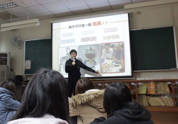 於大學兼課任教的手創老師,在「社會問題研究課程」中利用積木當作上課「教具」,希望以有趣又有目的性的方式,讓學員「用積木把對社會問題的『抽象思考』,實際堆成『具體的作品』」!並賦予建構的作品以豐富的意義,最後再請學員「詮釋」和「分享」作品的內涵與製作的感想。除了分享與詮釋,同時請其他組別的學員專心「傾聽」、延伸思考並提出相關可討論的問題。一系列從:
