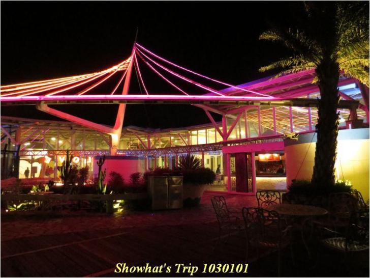 充滿原住民風味的餐廳(往外走一定要通過這, 我們的券沒附晚餐; 人多時是自助式, 人少則供風味套餐, @$580+10%---價格應該算合理, 還有現烤山豬肉, 但我們早已買了泡麵準備省錢兼節食, 夠摳一對---拼經濟一定不能靠我們, ㄏㄏ)