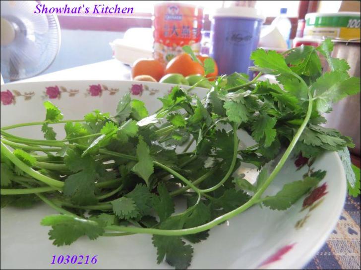 連續幾個濕冷天, 好不容易太陽露臉了, 和老公在陽台整理花木一整早, 沒想到過午PM1:30, 從冰箱裡拿出兩次都吃不完的半片鮭魚, 臨時煮了一鍋飯, 青菜有日前從小姑菜園現摘回的香菜 韮菜