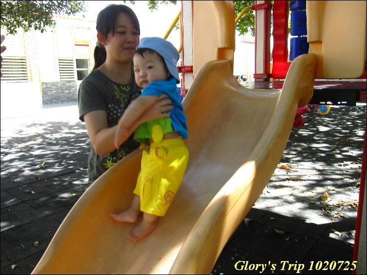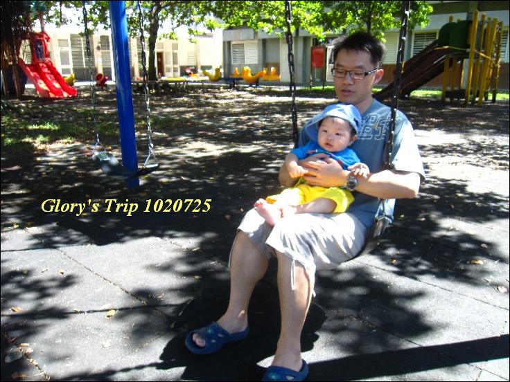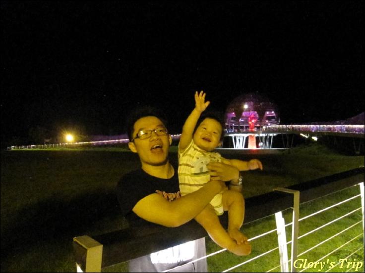 累癱了的媽媽還是勉力地把吵鬧的乖兒舉高高 "My baby!!!"---Sorry, 相機夜拍功能不佳, 技術又差.....
