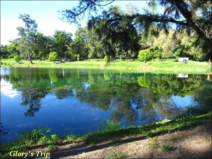 優氧化? 湖裡長滿了水草, 所幸發現有人正在處理......