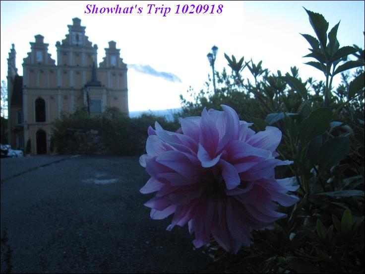背光處的城堡和花