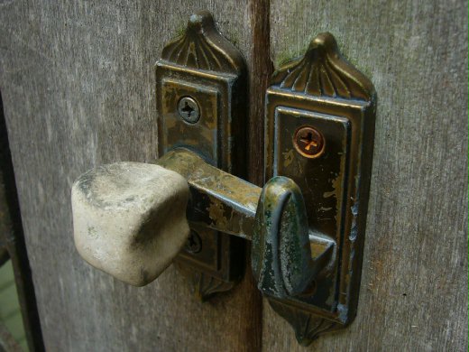 我太太則對於木門的上鎖方式特別讚賞。這旋轉鎖(圖二)也是自製的,設計重點是無論開或關是內外同步的(如果只有一邊能開關,無論設在內外,都不方便)。