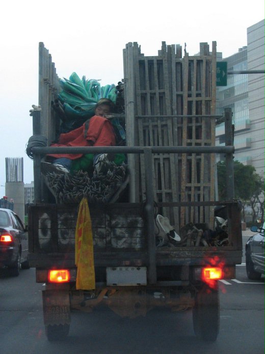一些建築工人就地躺在工地旁午休,身上只蓋一條小毛巾,還睡得很香呢~