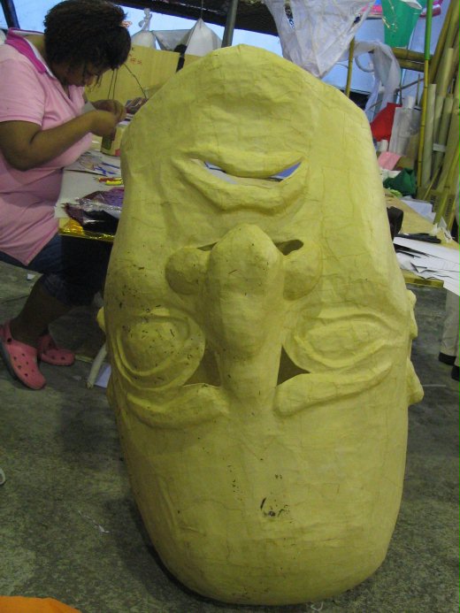 一個巨偶的頭就差不多1公尺高,完成後不就10公尺?據說,這個巨偶頭和身子要五個大人才能撐著走,算一算,現場就看到三個巨偶頭,那遊行那一天會有多壯觀啊!