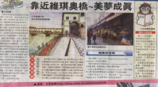 12/3興沖沖地去買了一份報紙,看到自己經營一年半來的「小米麻糬的旅遊部落格」,在聯合晚報上刊出,既興奮又欣慰,自己努力的一切,慢慢地被發掘並受肯定,感謝受聯合晚報編輯的雀屏中選,當然,一直有可愛的網友支持與鼓勵,小米麻糬才有今天的小小成果與大家分享。