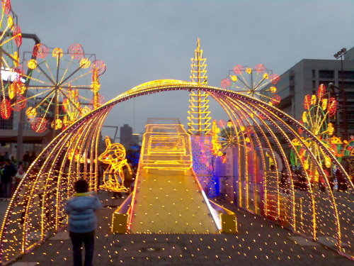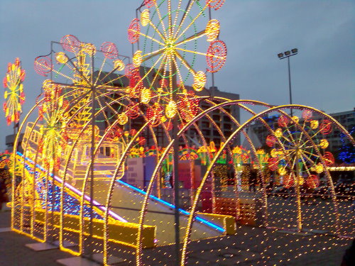 今晚,五點多走出世貿,看到市政府附近的燈會會場已有不少人潮,市府路長長的璀燦燈海及各式各樣的花燈把台北街頭點綴的更加美麗,明明得趕著回去工作的,卻還是忍不住拿起手機拍了起來,看著親子們手牽手漫步在廣場欣賞花燈,讓近來寒冷的台北似乎也溫暖了些...