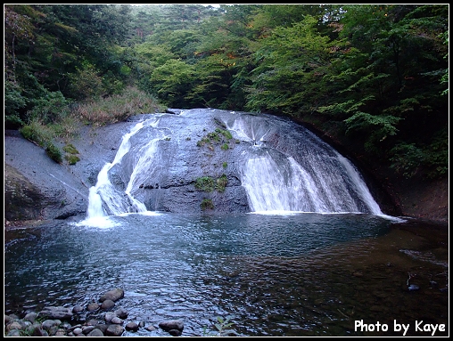 時間將近PM17:00,到達花卷溫泉。我們先到飯店附近的釜淵瀑布走走。初秋的東北日夜溫差大,穿著短T+薄外套的我都快縮成一球了。但最討厭的是,同團的阿伯們一下車就要抽菸,污染清新的空氣,這菸癮也太大了吧!
