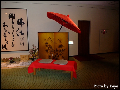 其中佳松園因昭和天皇兩度下塌而聞名,昭和天皇曾入住的房間目前仍保留不對外開放。所以啦,想當然這比較高檔的飯店,以我們的中低價位的團費來說,當然是住不到了咩。今晚我們入住的是花卷大飯店,花卷大飯店、紅葉館、千秋閣三館互通,所以旅客可以任意的泡這三家飯店的溫泉,還可以去逛此三間飯店的土產店。