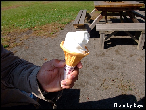 附近有奶製品賣店,來到農場怎能不喝牛奶吃冰淇淋呢?!我只會幾句日語,如家常問候語、偶爾會用來罵陳先生的笨蛋;其他都是看日劇學來的,比如說看醫龍學來的手術進行時的剪刀、紗布,手術結束~~……XD。但牛奶及冰淇淋還難不倒我啦,反正只要會說「米路酷」、「愛絲酷林母」就ok了,怎知我買完後。別團的阿桑們問我這兩樣要怎麼買,講完之後,馬上排起了人龍。