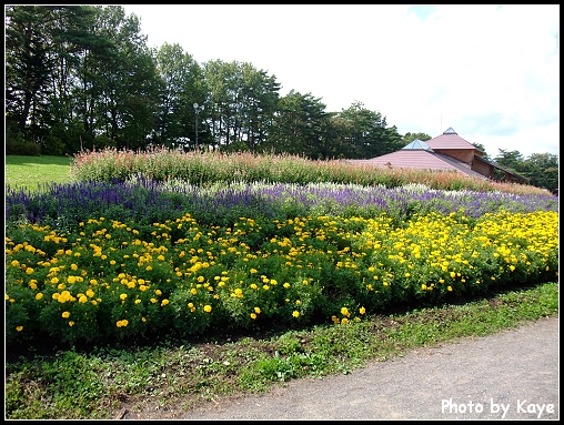 小岩井農場的樹還蠻美的,花花草草都集名在大門口一帶。但是此時我的心裡在想著為什麼沒有時間了呀,農場裡面其他的奶製品我都還沒吃到耶,像起司、蛋糕、牛奶糖、布丁,嗚~~~~,傻羊跟傻狗你們的show耗掉太多時間了啦。