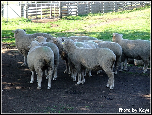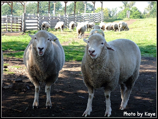接著我們去放牧場走走,聽到同團的大叔跟他老婆說,這裡有什麼好玩的,為什麼要停留這麼久,冏rz!一進去就遇到一群羊,感覺有點怕人,也有點呆呆的,冒著被羊咬屁屁的危險,我還是跑進羊群了。