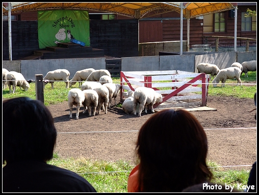 後來我們去看牧羊犬秀,剛好遇到來校外教學的日本小朋友們。感想就是全世界各國的小孩子在小時候都一樣番,看下圖可以看到每個小朋友帽子上都有不同的小裝飾,應該都是媽媽們巧手縫的吧!而且很多媽媽都很年輕漂亮,我旁邊那位陳先生的美女偵測雷達應該早就自動開啟了,我也想跟這些正妹辣媽們一樣可愛呀!不過要我跟日本妹一樣溫柔又輕聲細語,應該只有下輩子再重練了吧!哈哈