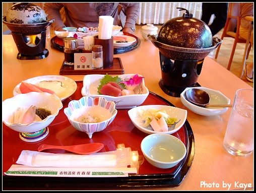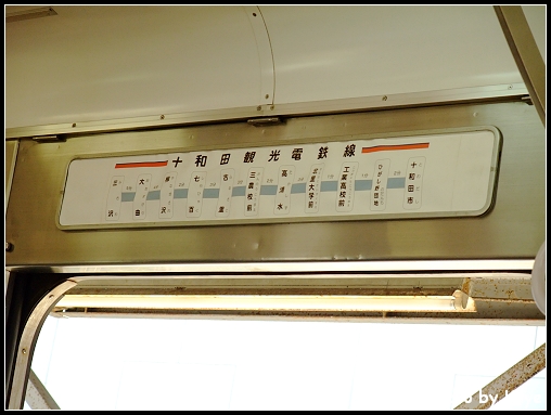 奧入瀨散策後是搭【十和田觀光電鐵】前往青森古牧溫泉,【十和田觀光電鐵】是連接三澤市到十和市的鐵道,全長14.7公里。電車的外觀與內部陳設與台灣的電聯車有些相似,也許非通勤時間,沿途上下車的民眾並不多。說是觀光電鐵,也許是在平原的關係,風景比嵐山嵯峨野列車略遜一籌;但入眼皆是筆直的針葉林及農田,這樣的風景也相當令人愉悅。