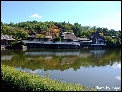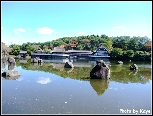 接下來我們到河童沼散步,河童沼是近萬坪大的人工湖。園區栽種有許多樹木花卉,還有不知道是蘋果或水梨之類的水果。園內有許多有關古牧溫泉的文字作品,不過看不懂日文,就拍照留念就好。