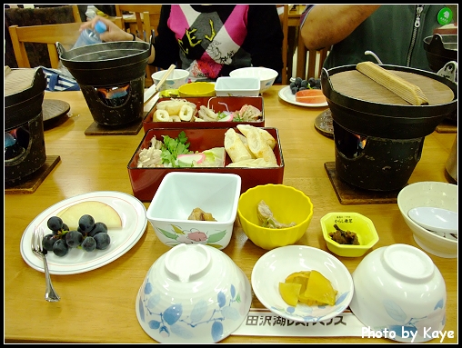 也許是先去過了景色靜謐雅緻的十和田湖,感覺田澤湖的景色真的是平平而已。不管是東岸白浜餐廳周邊或是辰子姬附近,都有一點點荒涼,也許是非假日沒什麼遊客的緣故。因為田澤湖週邊沒什麼餐廳,所以到東岸白浜一定得在這裡用餐 ,在這終於吃到了秋田代表的食物「米棒」,不過真的不合我的口味。食材份量不多,米棒火鍋也太鹹了,大概可說是這幾日最不好吃的一餐吧。