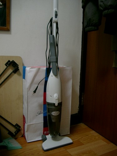 上次去同學小bi家看到她買了直立式吸塵器,她還蠻推薦的,說不用彎腰掃地,還能吸出一些有的沒的,馬上試一下,真的還不錯。她買的時候剛好在優惠,一台不用1000塊,當天回家馬上上網拍找,結果不用1000元的,集塵盒都是不透明的。又經過一段時間,實在是受不了常常得蹲在地上用小掃把掃頭髮,有時候還掃不乾淨,於是狠下心敗下去了,商品+貨到付款共1350元。