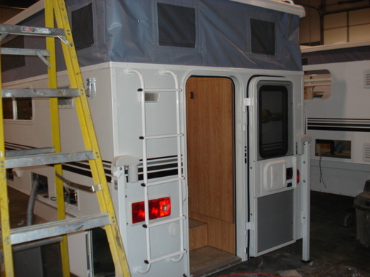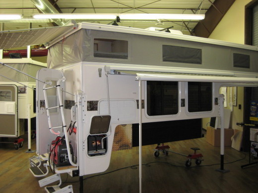 五種裏, 只有三種規格適合我的truck, 其實, 如果在台灣, 只有一種最適合, 就是最小的那台, 930磅, 6.5呎長, 因為我的車床長只有6.6呎, 其他的8呎及9.5呎都會有一段伸出車床後方, 這在台灣, 根本是不被容許, 裝上去一定會被警察攔下來開罰單! 只是, 它的配備差, 沒有衛浴是個大缺點, 買RV, 是為了AZ婆能否同行着想, 女人嘛, 那能像男人們到樹下遮遮掩掩的解決?