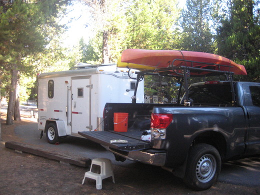 現在拉得動, 還算理想, 等再老一點, 拉不動又爬不了, 只有換truck camper一途了(當然也可換classAorBorC, 但這三種都要很多的$$$, 今生無望啦!
