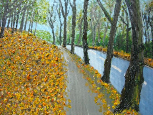一方面也是為了省錢, 再那裡我度過了非常愉快的一年.對於沒錢買車的留學生而言步行是當時解決交通問題最好的一個方法也是最大的享受.其實現在回想起來我還蠻懷念走路去上學及放學的那段時光.我居住的地區是蠻寧靜的住宅區,到學校的路上要走過一段有坡度的小森林,走再那段路上可以欣賞樹葉在四季的變化及呼吸新鮮的空氣.當然那段路對於常常到家裡拜訪的同學們也一定不陌生,留學生們的聚會常常就一起煮晚餐或是到各同學家品嚐不同的異國料理,而擁有一個完整廚房及完整的家的我們家也常是大家聚會的場所,剛好我們的室友也都很好客所以常常大家就會到我們家集合了.而這條路也是大家來訪常走的路, 所以對我真的是意義深重當然還有我美麗的許許多多回憶,改天想嘗試畫下他在不同季節的風貌,而且我心裡有個計畫有一天我要再回去看看哦!