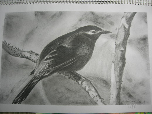 也很久沒去上畫畫課,因為大家都在過年所以就暫時休息。舅舅收集了去年的月曆給我,因為他覺得上面有許多美麗的鳥類圖片,我也許會喜歡可以拿來做為繪畫的題材。剛好現在在練習鉛筆畫,將兩張自己較喜歡的圖片拿來做練習。不過,我也運用了一個投機的小訣竅。因為我要畫鉛筆畫所以須清楚的描繪出明暗,所以先利用影印機將圖片印出,成為黑白圖片,這樣畫起來就較簡單了。希望這兩張練習作品大家會喜歡。
