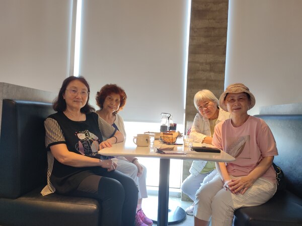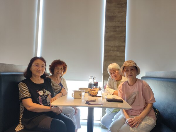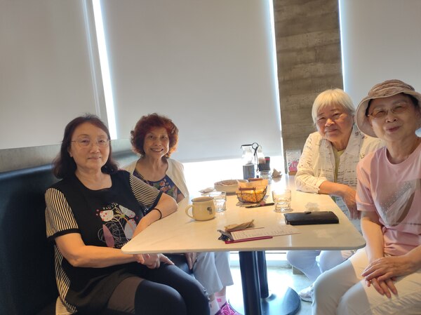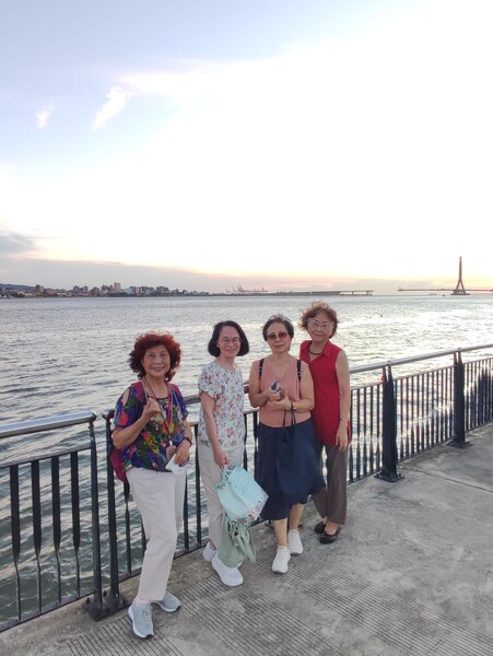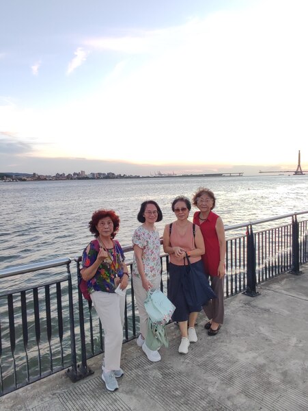 我在教會周二的服事和學校的課程隨著暑假的到來,暫時休息一下。上週退修會,牧師帶著我們同工搭機捷去第二航廈5樓觀景台看飛機起飛。因為預訂下期的旺得福課間要帶長者來此一遊我們就先來踩線規劃。昨天我也難得有空檔和大學好友們約了在台北南港CITYLINK聚餐及去淡水看夕陽。回程很順利,8:00多坐淡水線到台鐡轉乘區立馬搭上了自強號,10:10就回到家了!「老」朋友能結伴出門吃喝玩樂,拍拍美照,真是不錯!坐上台鐵時,兩姊弟跟我視訊,我還對著火車車廂拍給他們看,也讓他們聽聽火車廣播聲和開動時的輪子轉動聲。他們也很興奮呢!