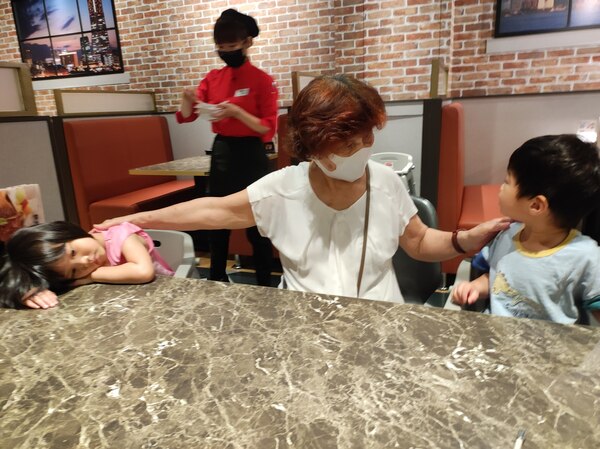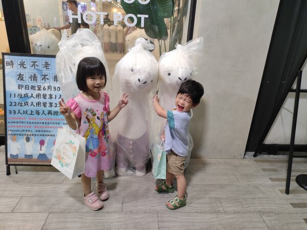 上周末晚上,兒子一家和我在中原大學附近的橫濱牛排館為Kyle慶祝三歲的生日,他吃得很開心,還動手DIY自製了棉花糖。Emily腸胃有些不舒服,食慾不佳,但在餐廳外的玩具攤,兩姊弟抽抽樂,各自獲得一袋小禮物,都很高興,非常滿足!我在一旁也感受到好心情,元氣滿滿!感謝主!