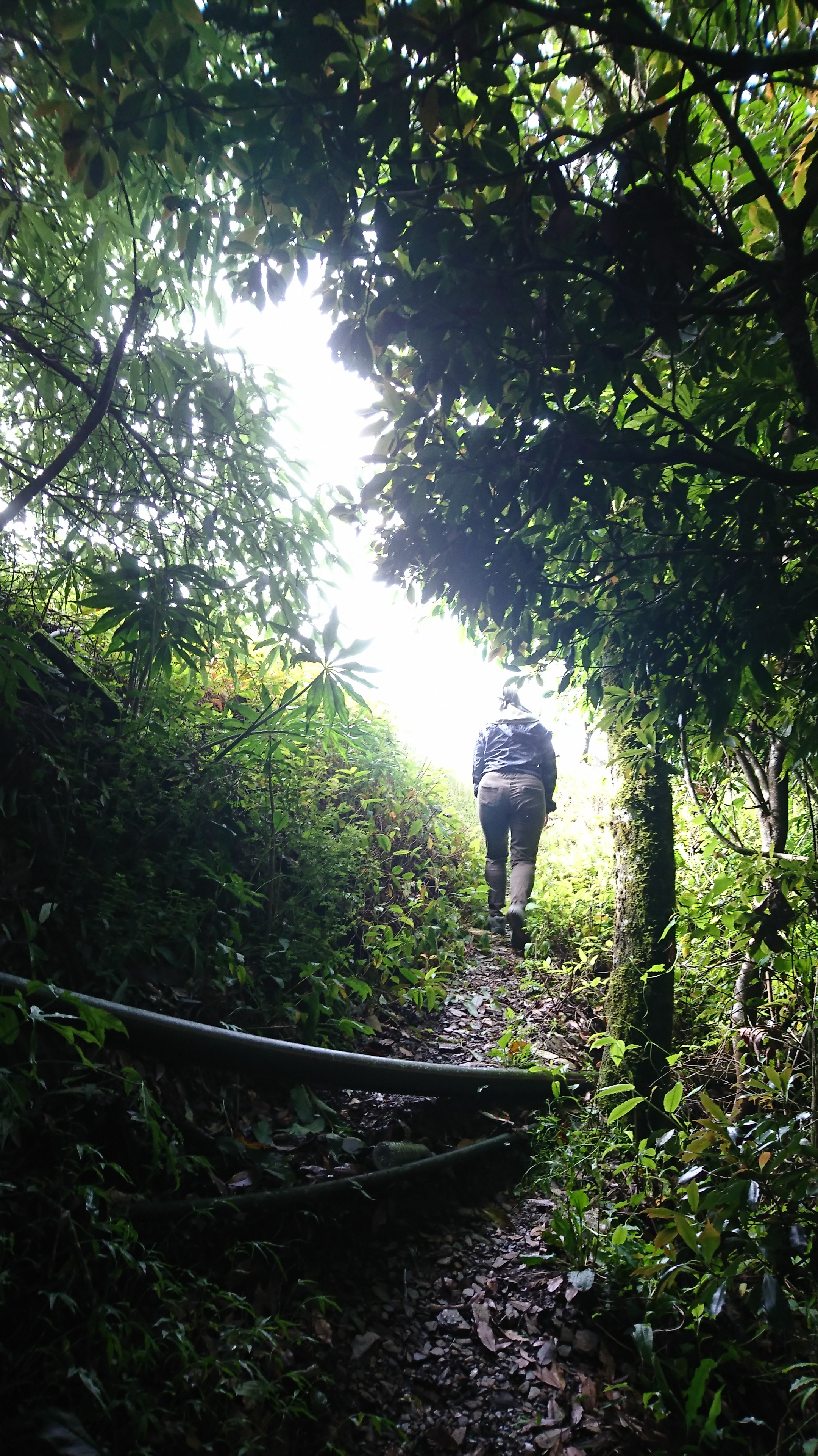 這是第一天爬山拍的照片,當時處於半虛脫狀態,畢竟很久沒運動了,一回來民宿還沒上班就先早起爬山了!更別提那山況有多刻苦,一路往上還要彎腰過樹洞還要橫跨樹幹等,這對長期沒有認真運動的我特別吃力阿...