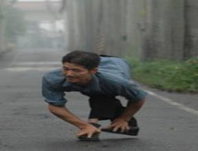 到了七歲,爸爸才教他用兩隻手,拖著鞋子走路。你可以想見,當阿潭用手拖著鞋子走路,別人一定都會用好奇的眼光看他,但阿潭總是不自卑,而以點頭、微笑面對。