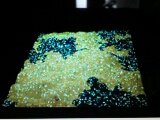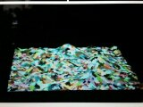 一大片隨處可見平凡無奇的細沙,天空藍的單色由投影機射下揭開了序幕。顏色像小雨點班跳了出來,生動活潑的在沙堆上飛舞,瞬間覆蓋了整片沙灘!接著,雨點變大了一點,像一大群彩色的小螞蟻,忙碌的搬家準備過冬。還來不及驚嘆的同時,螞蟻群又變大了些,像一片片彩色的拼圖,拼出了你我的家!數不清有多少片,就像是的衛星透視圖,我看到了城市、高山、海洋,我看到了橙縣、加州、美國。五大洋、七大洲進入我的眼簾,版圖不斷加大,顏色不斷減少,最後回歸最初的簡單!一大箱細沙,靠著投影機和電腦程式,藉由點、線、面、和顏色的變化,短短分鐘,創造出如此特別、如此發人深省的視覺效果。