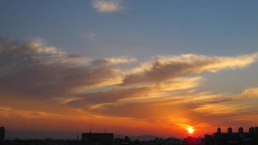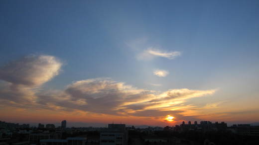 那充滿希望的亮彩,迅速的渲染了天!藍的、紅的、黃的,橘的,灰的交融著!