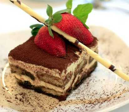 mascarpone cheese, espresso or some sort of strong coffee, lady fingers/thin cakes, eggs, powdered cocoa and sugar.