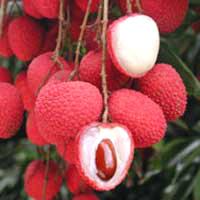 Lychee is the sole member of the genus Litchi in the soapberry family. It is a tropical and subtropical fruit tree native to China, and now cultivated in many parts of the world. The fruit has a pleasant floral taste and is very sweet. The lychee fruit is about 1 and a half to 2 inches in size, oval to rounded heart shape and the bumpy skin is red in color. Once you peel the skin off, the crisp juicy flesh of a lychee fruit is white or pinkish, translucent and glossy like the consistency of a grape, but the taste is sweeter. Lychee is cultivated and are extensively grown in China. Lychees are commonly sold fresh in Asian markets, and in recent years, also widely in supermarkets worldwide. The red rind turns dark brown when the fruit is refrigerated, but the taste is not affected. It is also sold canned year-round. The fruit can be dried with the rind intact, at which point the flesh shrinks and darkens. The lychee contains on average a total 72mg of Vitamin C per100 grams of fruit. Lychees are low in saturated fat and sodium and are cholestrol free. Most of the energy in a lychee is in the form of carbohydrate (sugar). Lychees are high in polyphenols, containing 15% more than grapes.