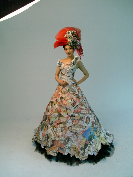 大家最興奮的莫過於那件傳說中名服裝設計師林國基親手特製的報紙禮服