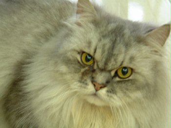老喵喵是隻混種金吉拉,當爸爸的過程挺妙,當初我和好友打著如意算盤,讓兩人成親家,新娘是混種暹羅貓,外型上看來並不怎匹配,初次體驗男歡女愛的小倆口每次約會下場也都不甚「理想」,總是出現不知所措的少年郎急得在屋裡繞圈圈,小姑娘對這不解風情的二愣子更是惱火,偶而還會祭出貓拳伺候;就這麼耗了好一陣子,有次我和朋友外出吃飯,把小倆口留在家裡,回來的時候又繼續看到一前一後繞圈圈的狀況,心想大概這次又無著落,就各自散會,沒想到過了一個多月,好友打電話跟我說新娘似乎胖了很多,帶去看醫生才發現有喜,兩人正為了傳宗接代有望而開心,第二天凌晨小媽媽就臨盆了,因為男女雙方的血統淵源都難以查證,結果生下3隻毛不長不短、顏色也出乎意料的小小貓,一切都快得令人瞠目結舌……