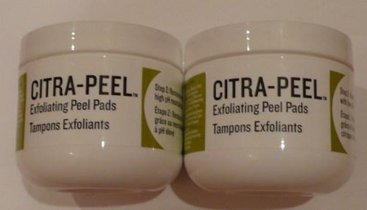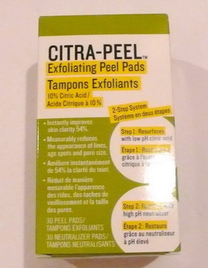 打開盒子後有兩罐長相一模一樣的東西,罐子上用英文標示STEP 1和STEP 2,裡面也都是長相一樣的圓形化妝棉,一面有押花顆粒,另一面則是平滑的。STEP 1是用來進行果酸作用,把臉洗乾淨後在臉上輕輕按摩(避開眼唇周圍),然後等待5分鐘後,再用STEP 2的化妝棉輕輕擦拭按摩,終止果酸作用並且調理肌膚,最後用冷水洗淨,就可進行一般的保養步驟。