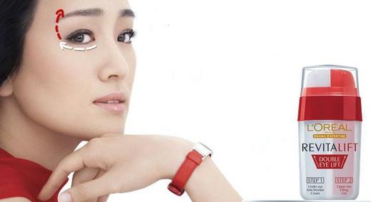 首先要介紹的,就是最近鞏俐姐姐在電視廣告上強打的L'OREAL活力緊緻雙效彈力緊實精華眼霜,除了砸大錢請鞏俐姐姐拍廣告,光看這麼長一串的名稱就很唬人。