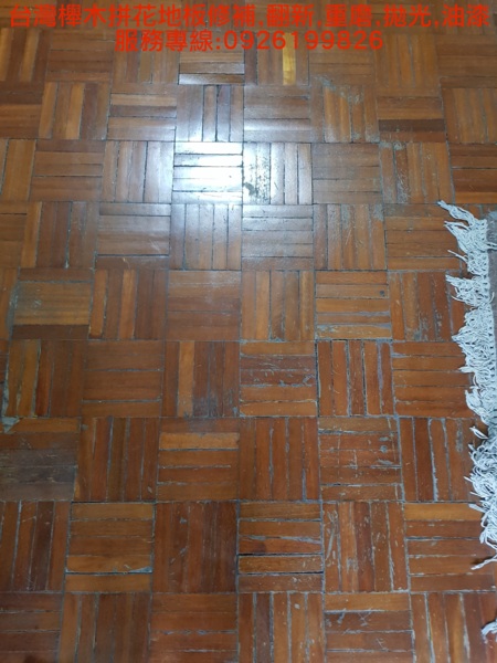 台灣櫸木拼花地板修補,翻新,重磨,拋光,油漆 服務專線:0926199826