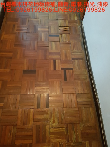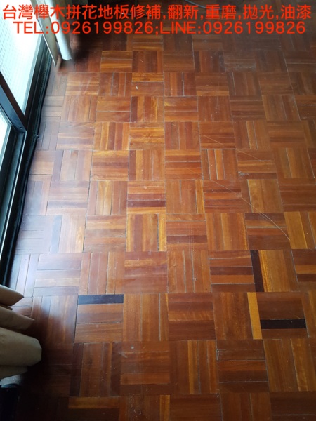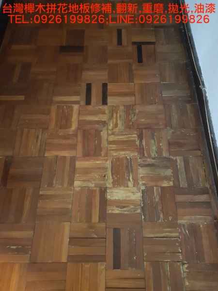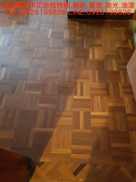 台灣櫸木拼花地板修補,翻新,重磨,拋光,油漆 TEL:0926199826 LINE:0926199826