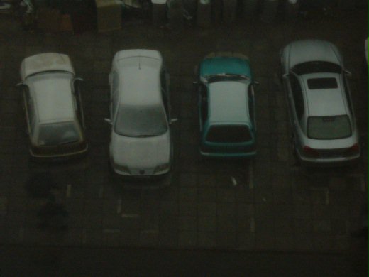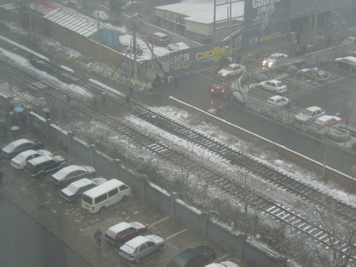 再往遠處一點看去,停車場上也有一堆被白雪覆蓋的汽車模型,原來的顏色已不復見,大家都穿最新款的白色果凍衣。再遠,某塊空地上也披著一層新娘子的白紗。透過霧茫茫的玻璃,依稀還有細如塵埃的雪花從天上漫無邊際地落下,不過那雪珠實在是太細了,看樣子還沒降落地表就會很快消失了,這場雪,只能說是殘雪,並沒有再擴大的潛力。