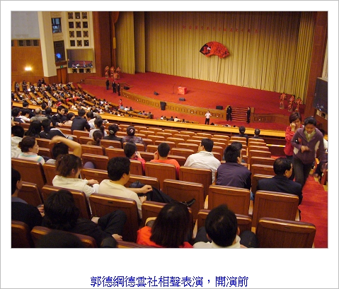 然而,台上準時,台下卻還在另一個時空。節目開演後,一批、二批、三批….好幾批人依舊大剌剌地在走道上來回穿梭,尋找座位。我坐在二樓,放眼望去,整個二樓都還鬧哄哄地,萬頭鑽動。台上在說啥?我根本沒聽到。