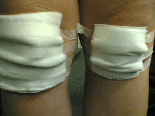 心翻著裙子摸著膝蓋直喊:好痛!好痛!