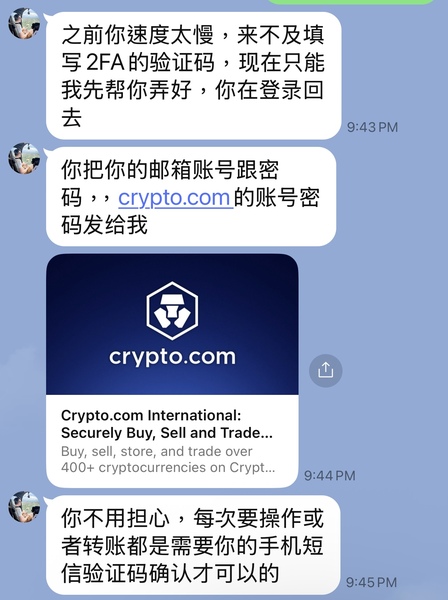 · 我因為不熟悉雙重認證(2FA)操作而陷入困境,在此過程中,他不斷施壓,要求我提供郵箱、姓名、密碼。